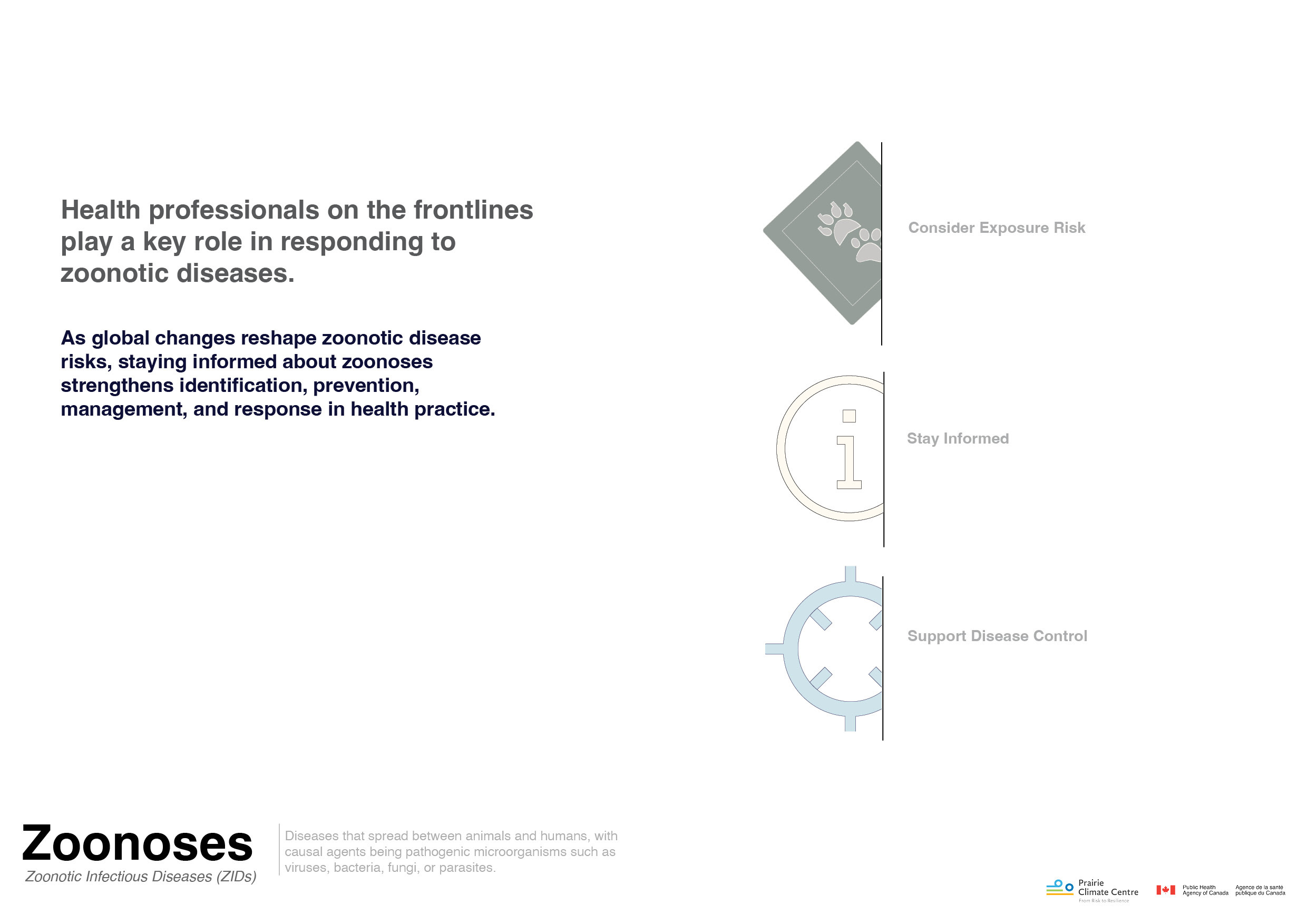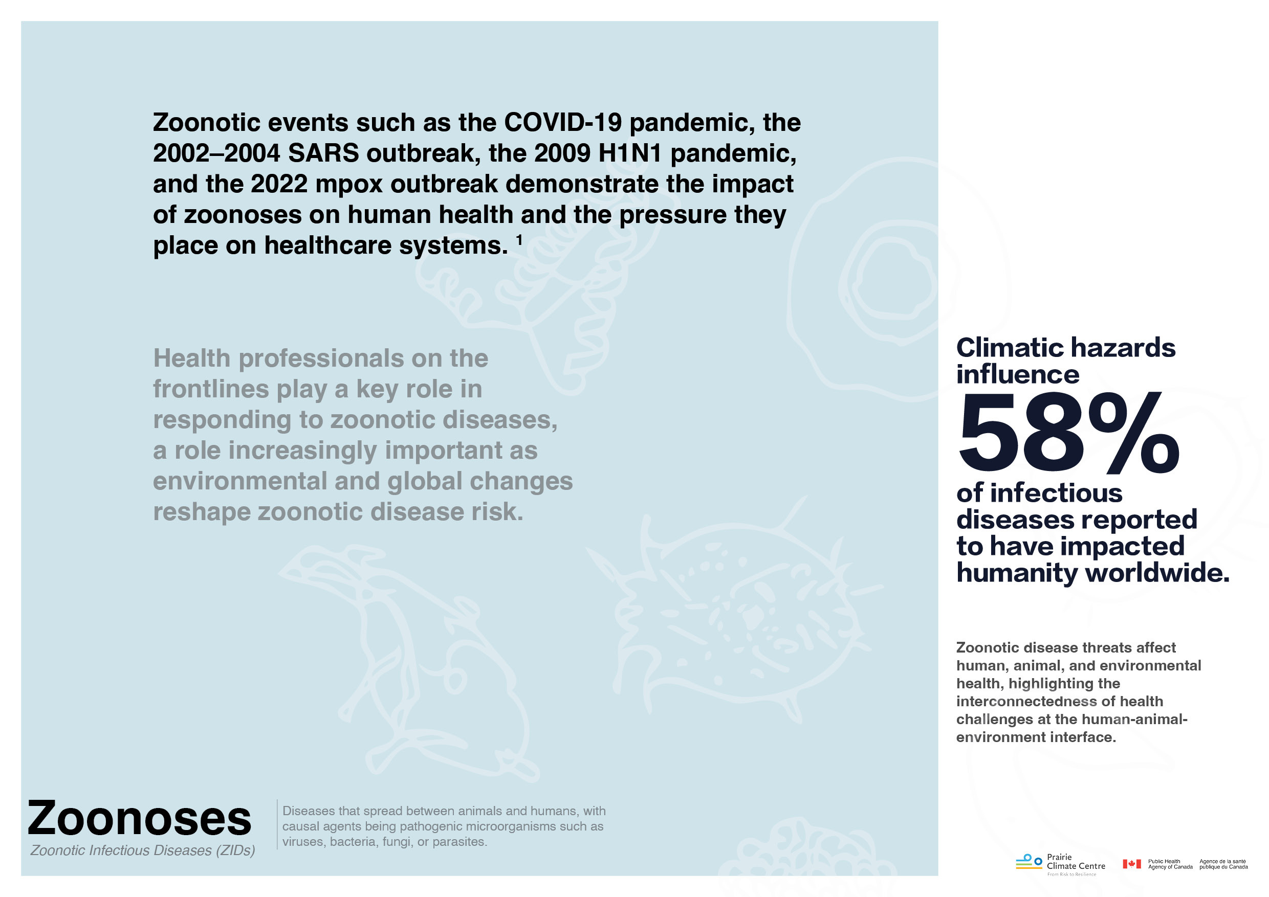 Welcome to the Zoonotic Infectious Diseases (ZIDs) Awareness Campaign. These resources are developed for health professionals but are suitable for everyone to learn about zoonoses and climate change.
