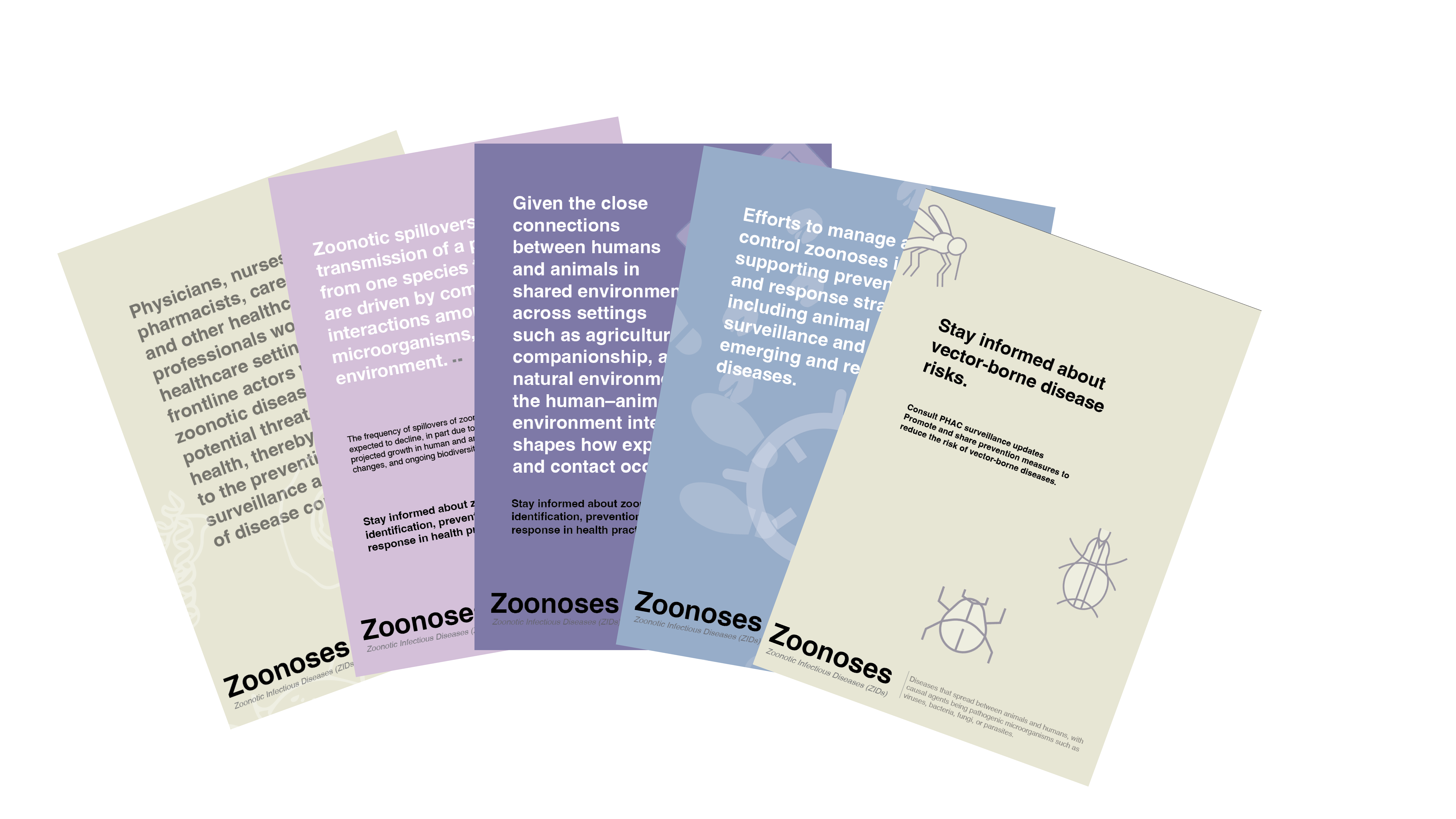 Shareable visual materials created to support dissemination of the campaign's key messages, directing interested readers to the related Zoonoses Briefs for further detail.